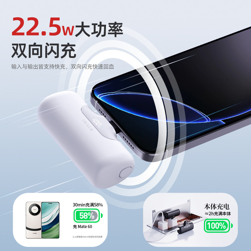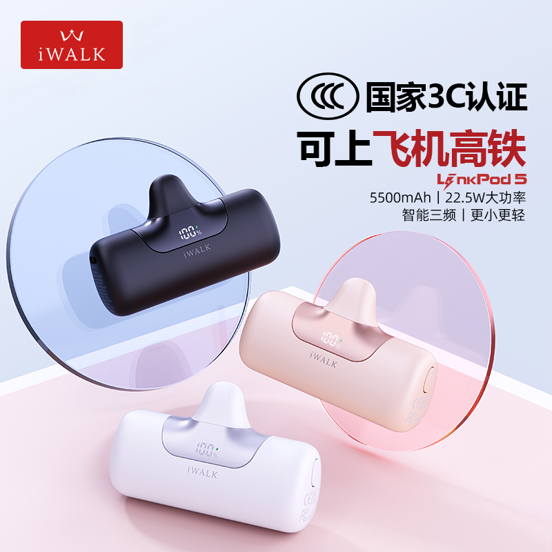 【3C认证】iWALK爱沃可2025新款口袋充电宝双向快充迷你轻便小巧胶囊移动电源便携可上飞机适配苹果华为小米