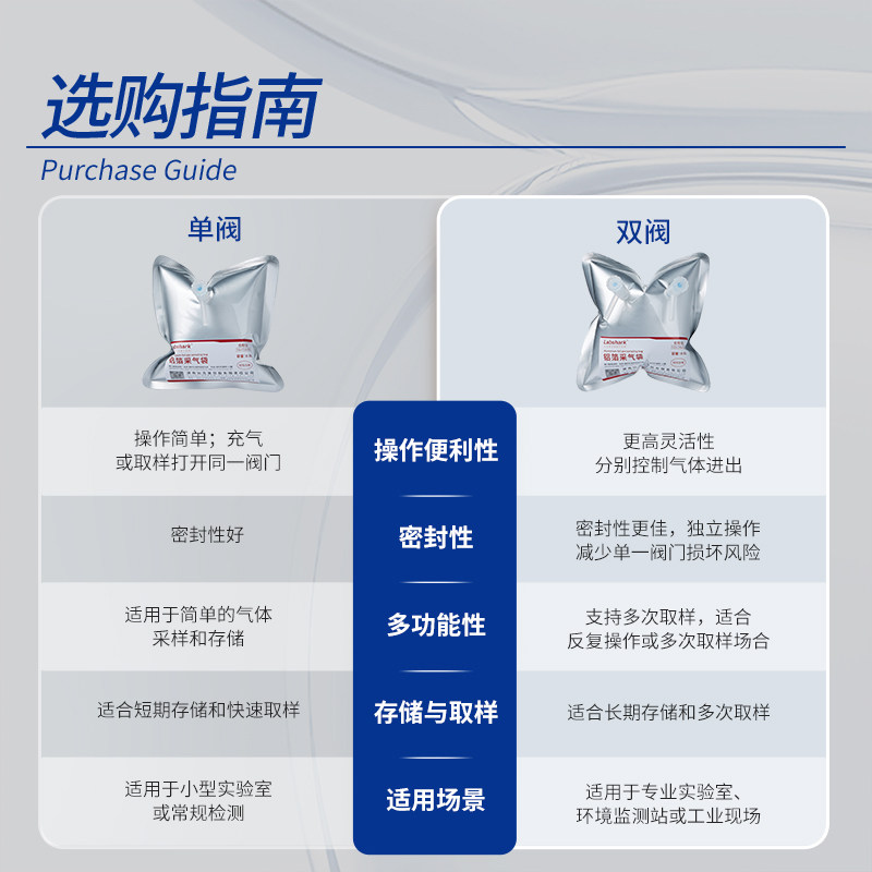 Labshark铝箔采气袋气体采样袋单双阀门气体取样袋铝塑复合袋