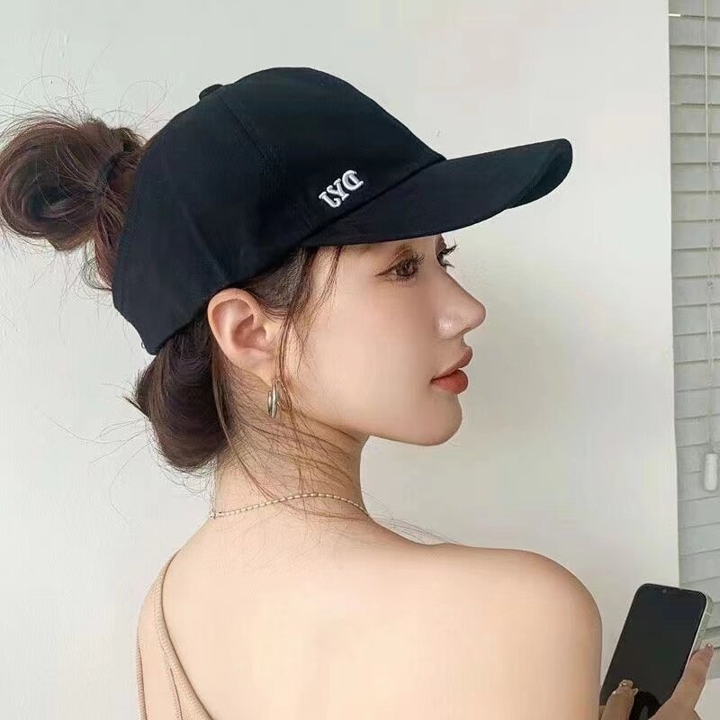 2024春夏新款棉布鸭舌空顶帽男女士情侣户外休闲防晒高马尾帽子