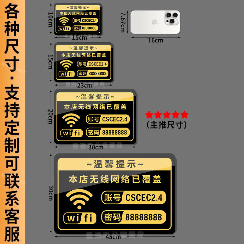 wifi提示牌墙贴酒店waifai密码牌无线网络提示牌宽带账号密码指示牌温馨提示定制亚克力餐厅店内广告牌告示牌
