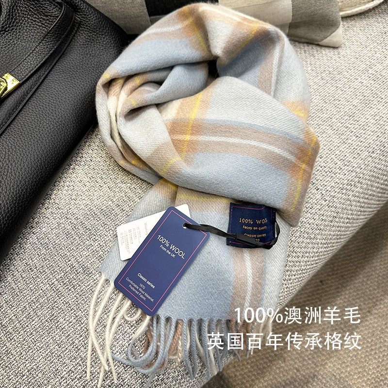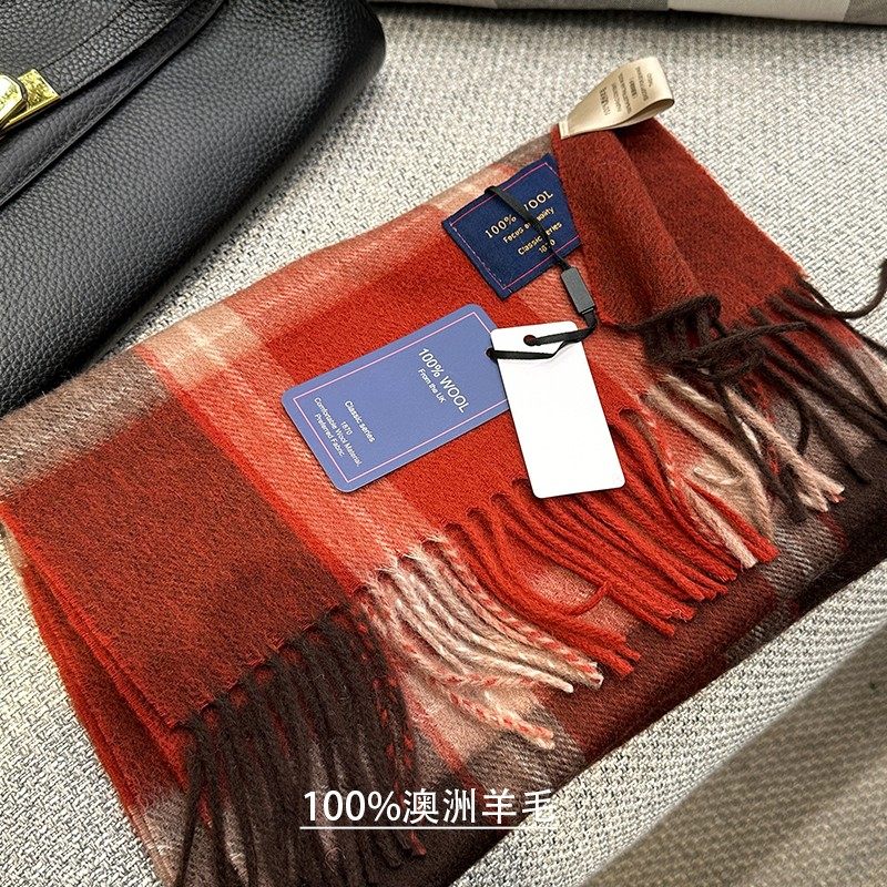 复古格纹新年礼物100%澳洲羊毛红色格子围巾女冬季圣诞保暖围脖男