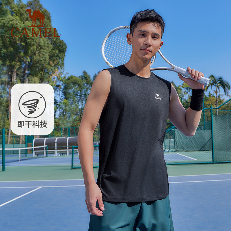 骆驼男装运动速干背心男夏季健身T恤透气吸汗无袖跑步篮球训练服