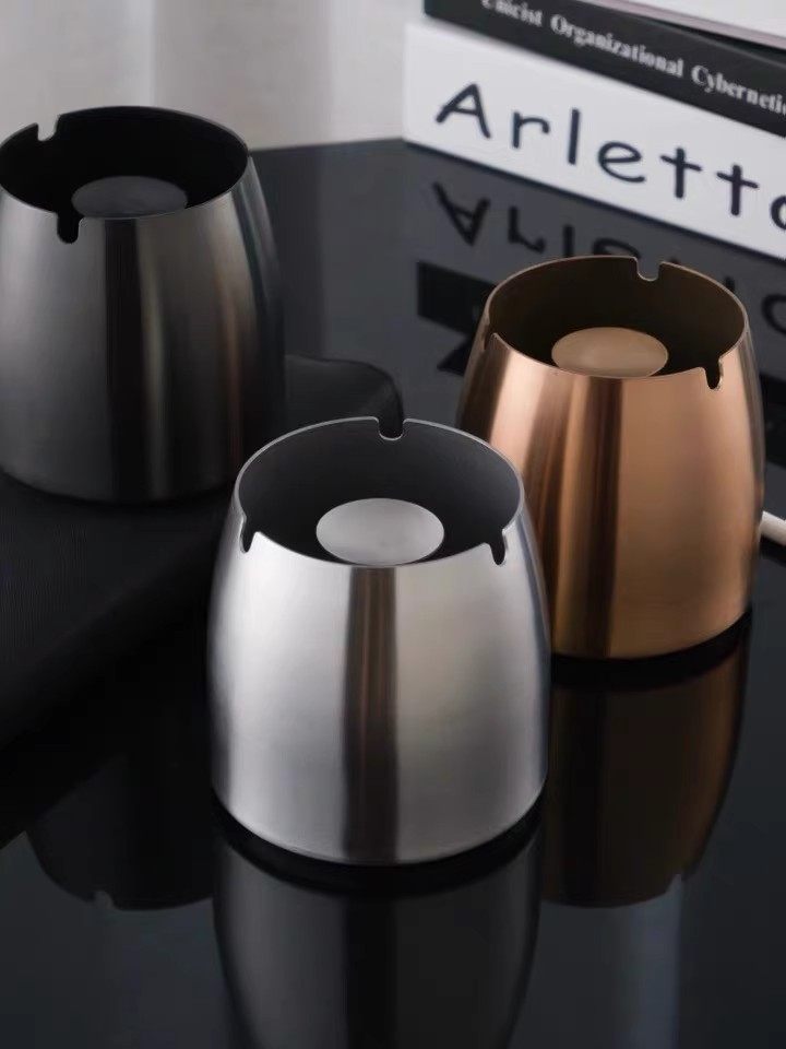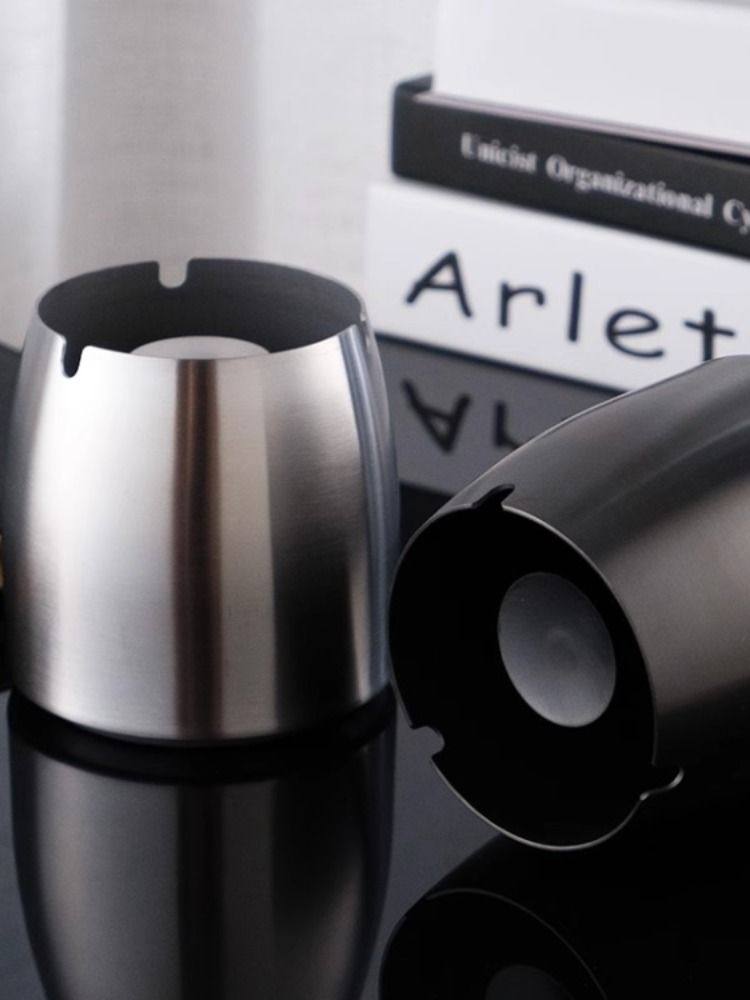 不锈钢烟灰缸轻奢办公室卧室飞漏斗创意型带盖特大号超大号大容量