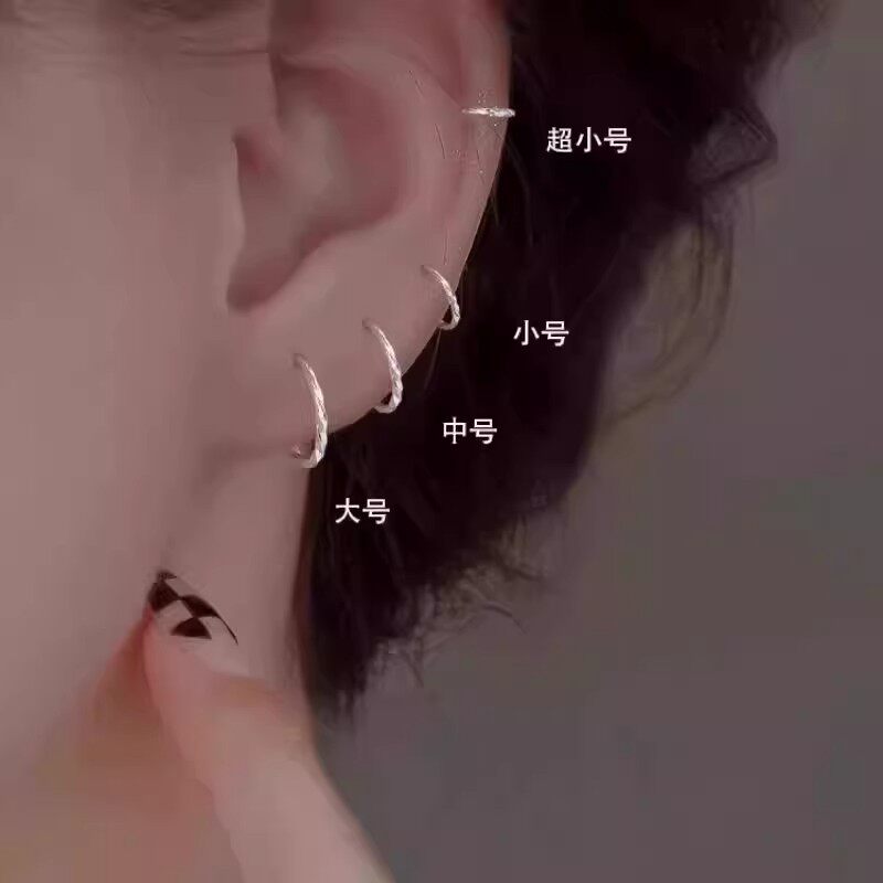 S999纯银耳环耳圈耳骨钉养耳洞耳骨环高级感素圈耳扣耳钉女耳饰男