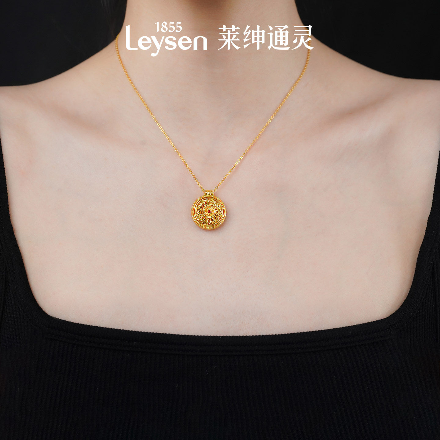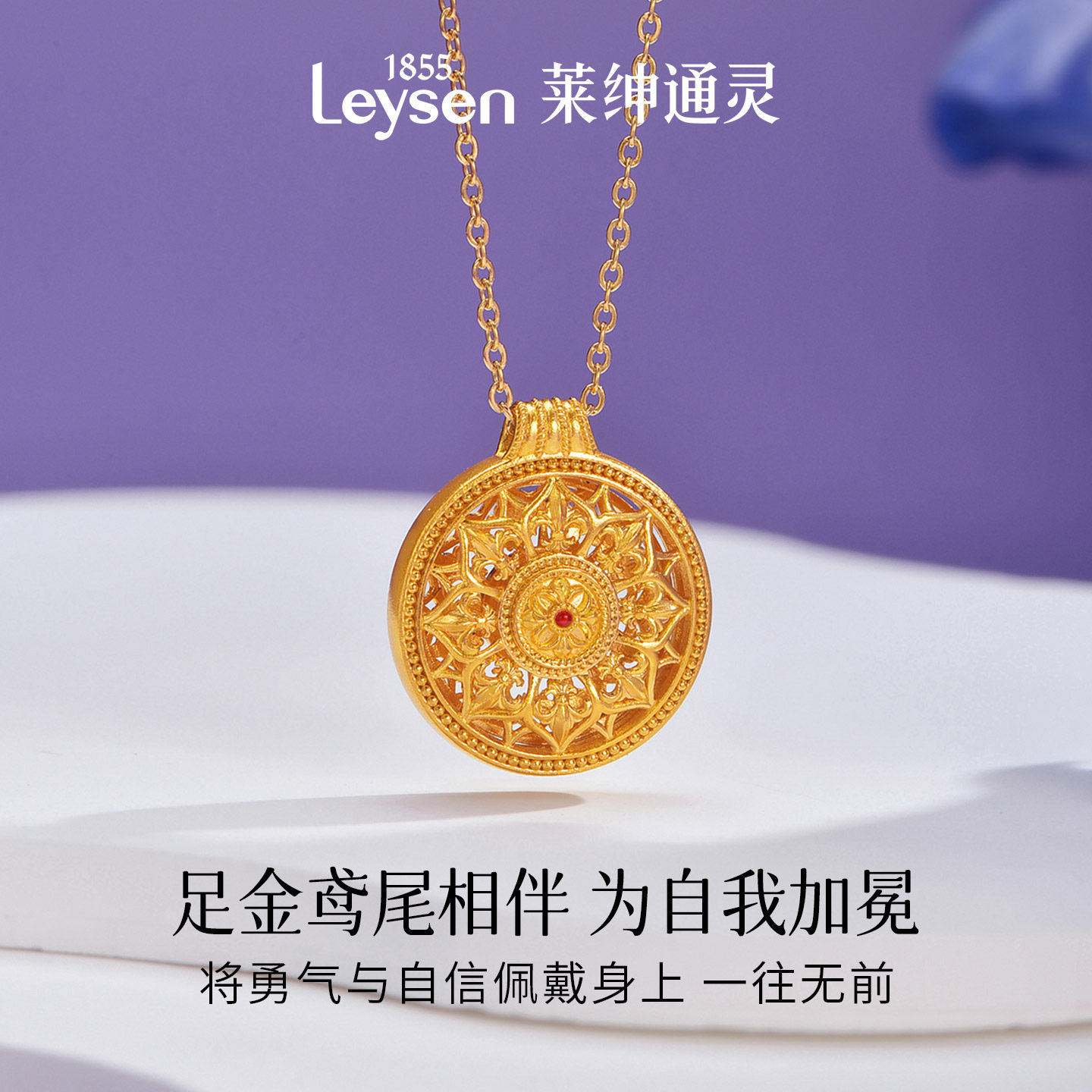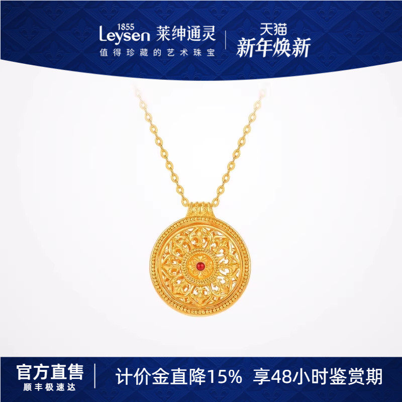 【计价金】莱绅通灵传世金 鸢尾系列八宝罗盘足金999黄金珐琅项链