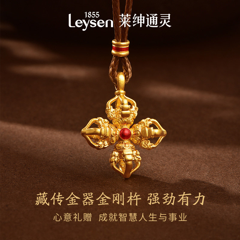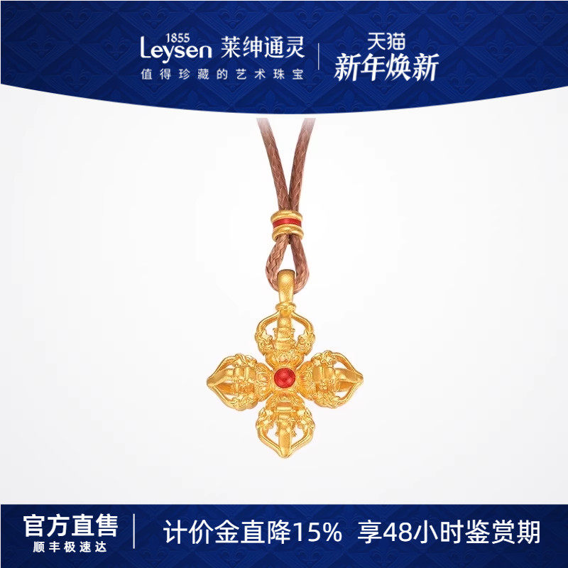 【计价金】莱绅通灵梵光系列 十字金刚杵 足金黄金吊坠 多退少补