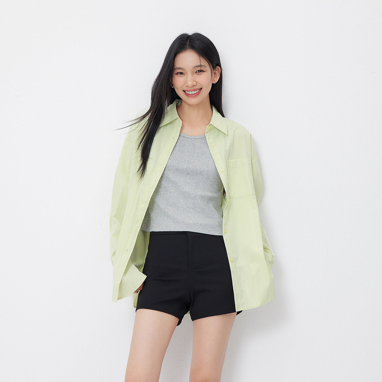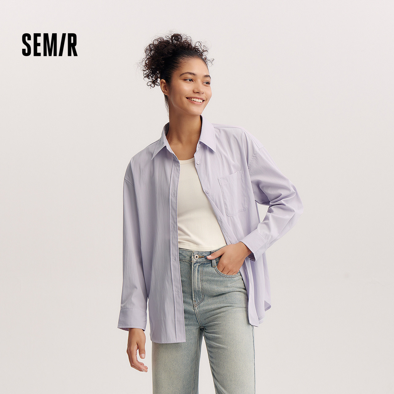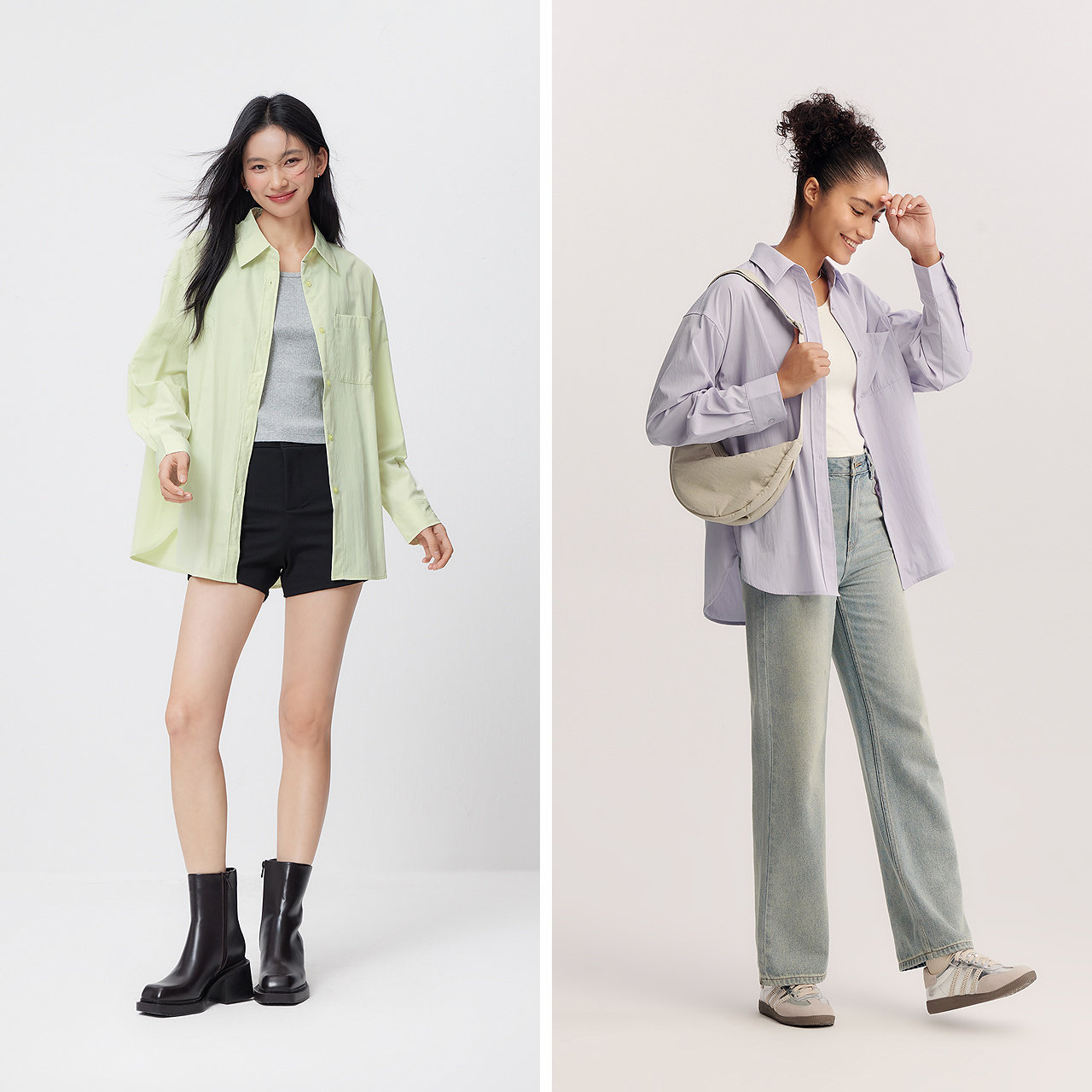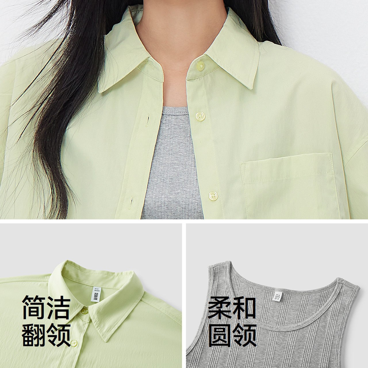 森马长袖衬衫女春oversize肌理中长款衬衣短背心松弛感潮流两件套