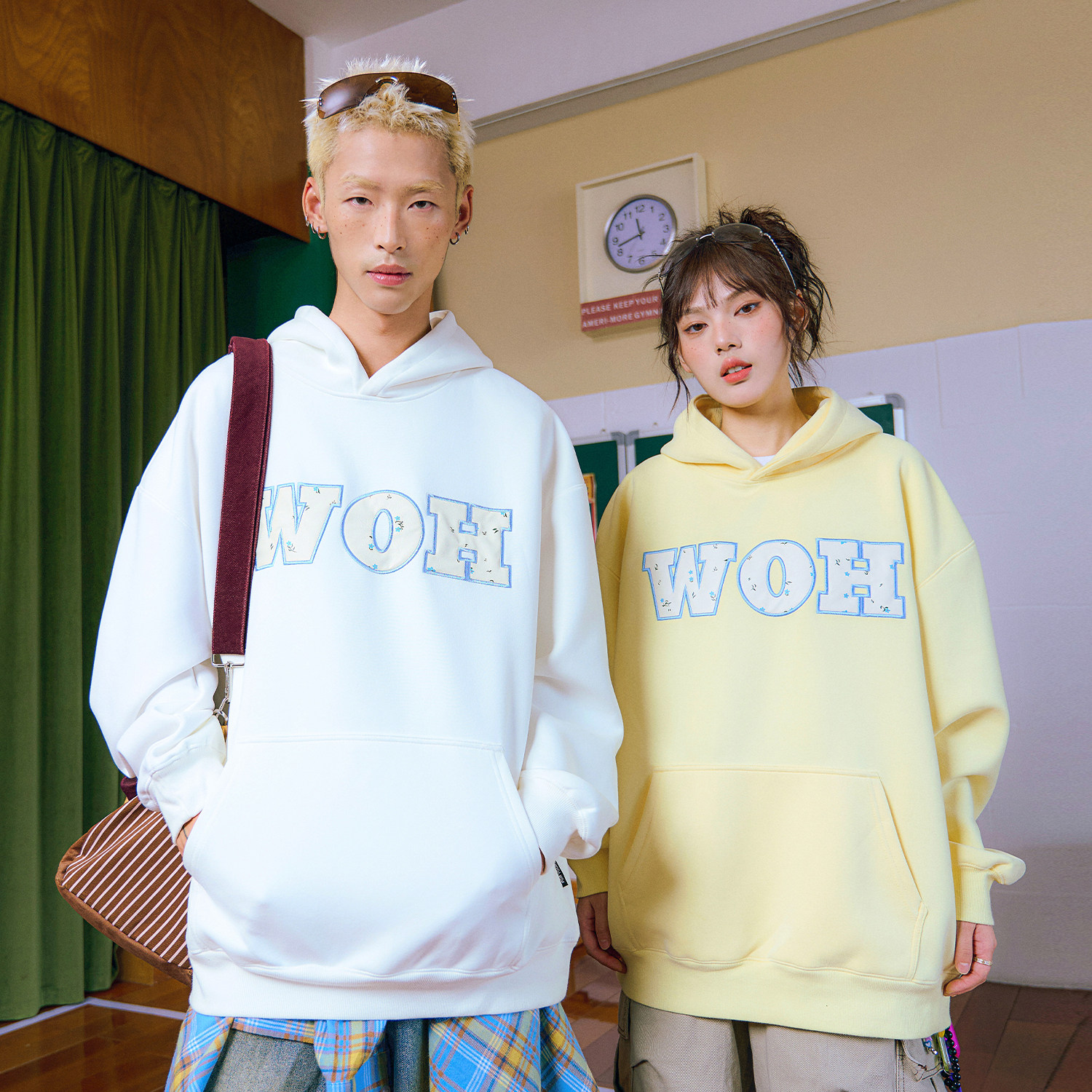 wohoo字母连帽加绒卫衣男2025新款美式潮牌重磅情侣帽衫外套女冬