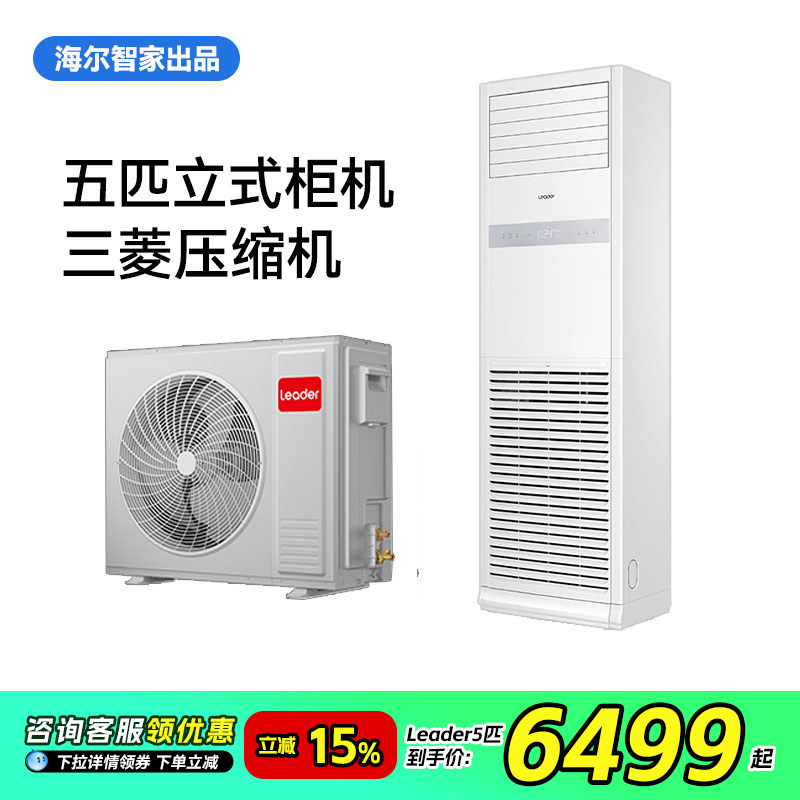 【焕新补贴】海尔五匹立式柜机中央空调5p商用leader冷暖三菱旗舰