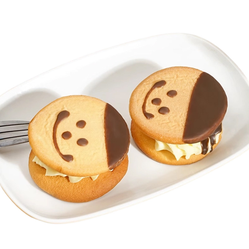 老式奶油笑脸蛋糕娃娃脸奶油夹心蛋糕硬夹心饼干8090儿时怀旧面包