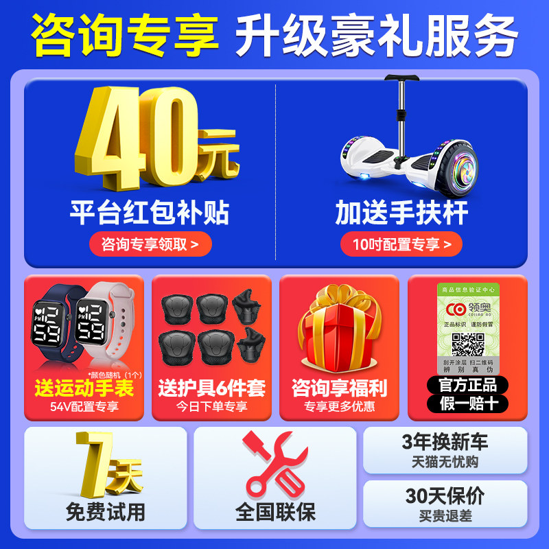 领奥智能儿童电动自平衡车6到8到12岁10到15岁以上2026新款平行车
