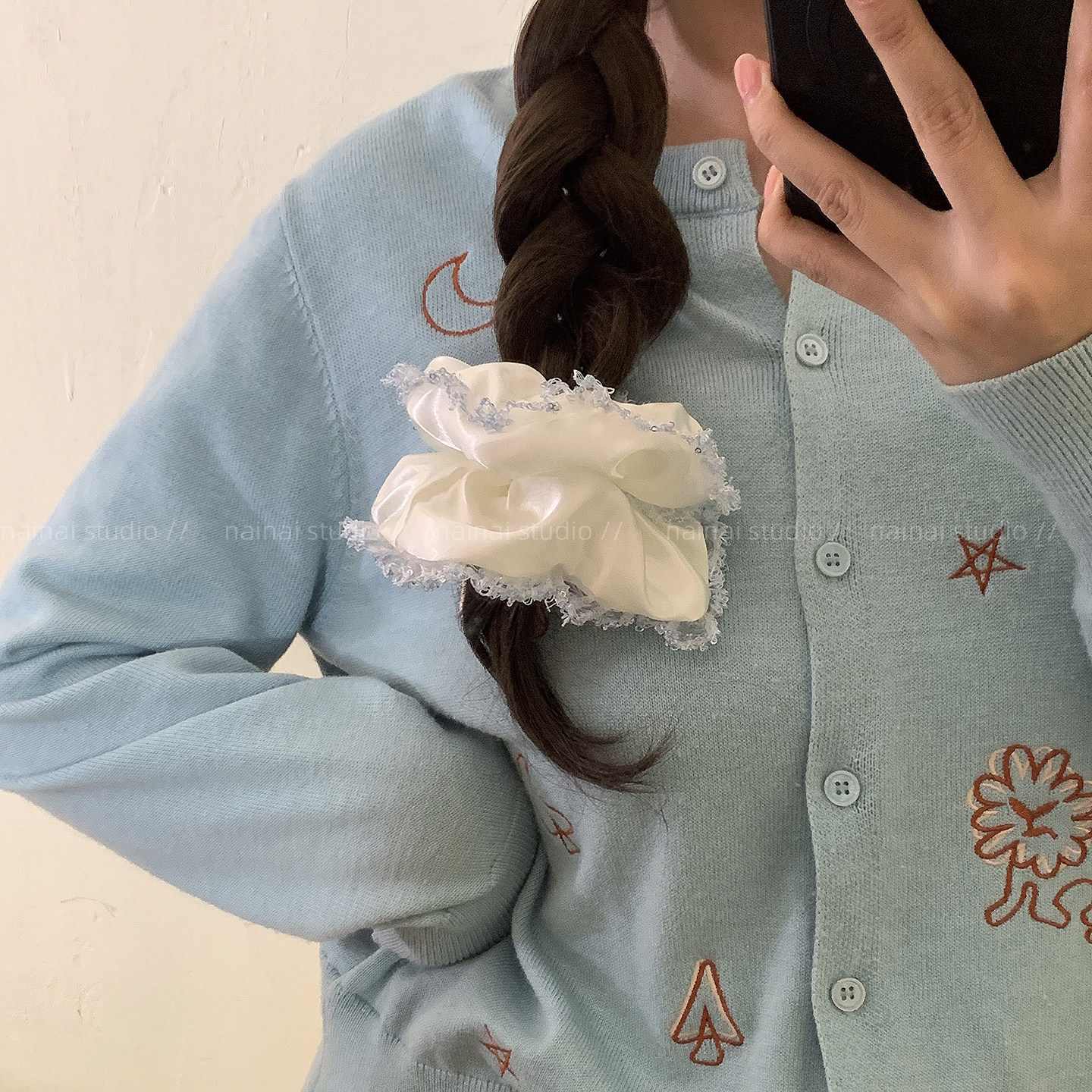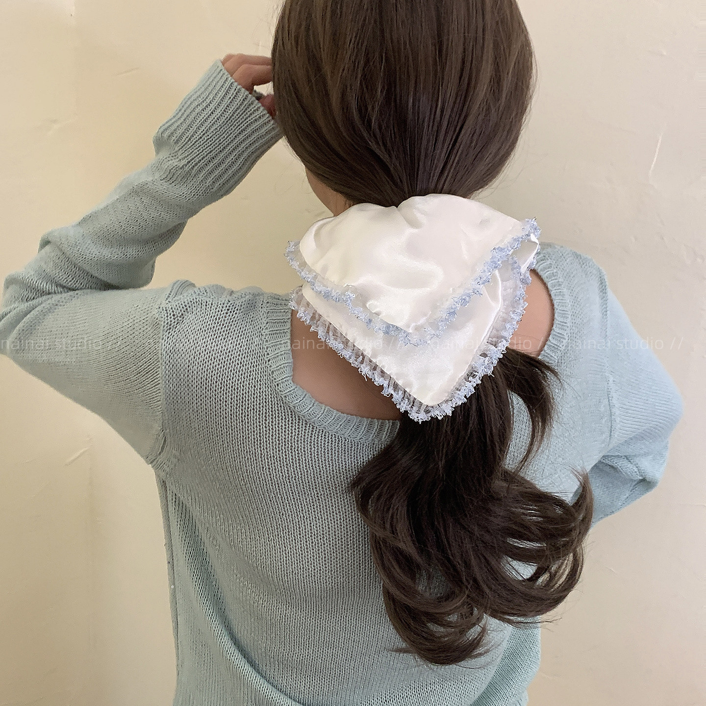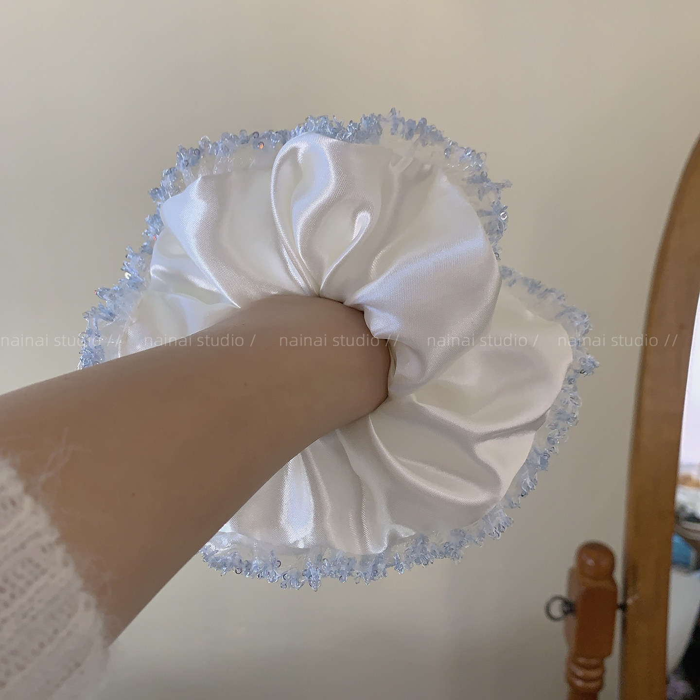 白月光大肠发圈~超仙珠光白色蕾丝花边方巾发绳低马尾皮筋头绳女