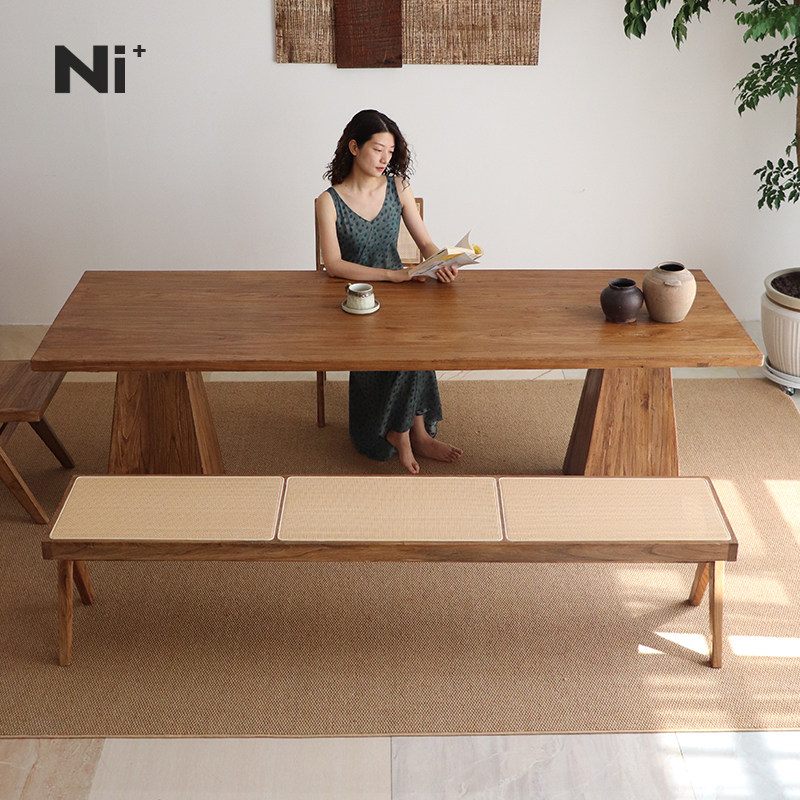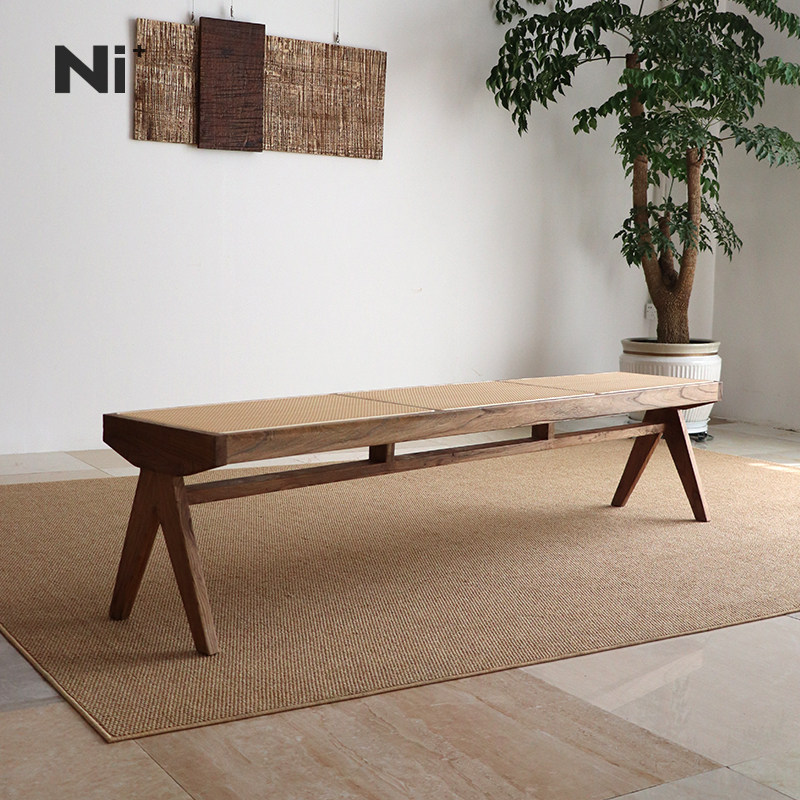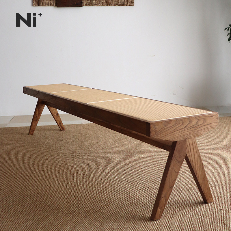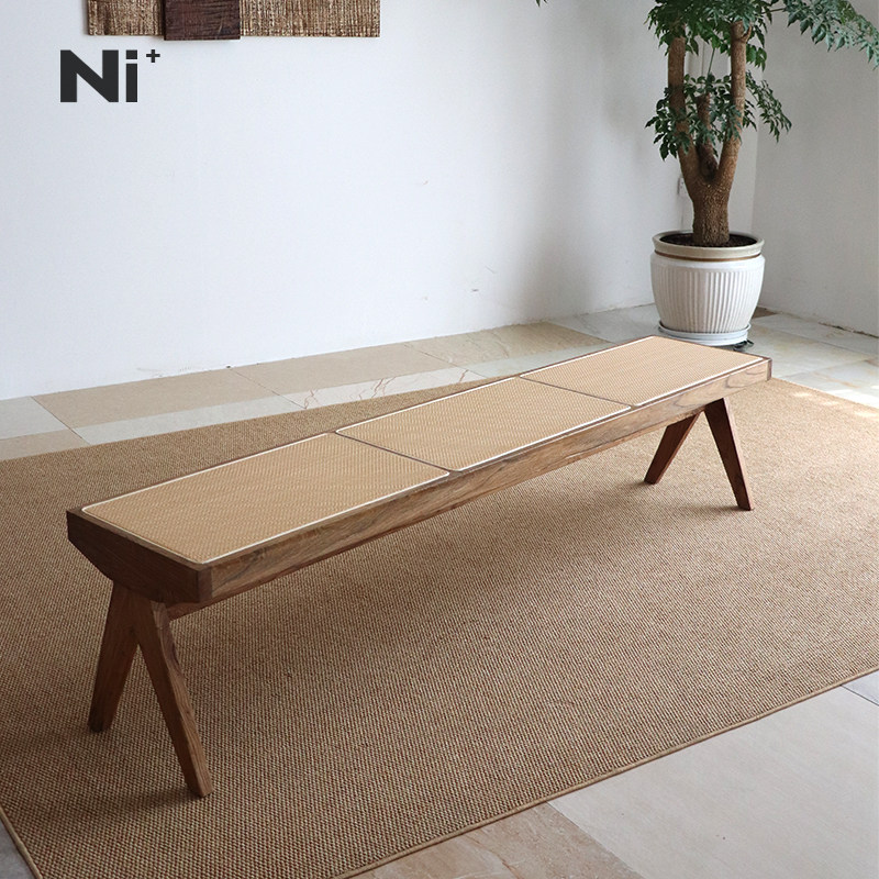Ni+尼家侘寂风藤编长条凳实木换鞋凳中古床尾凳家用民宿餐厅餐凳