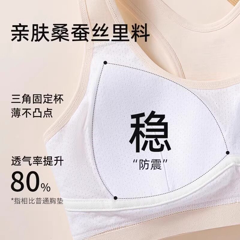 婷美运动发育期内衣女生初高中生少女文胸桑蚕丝无痕透气小背心