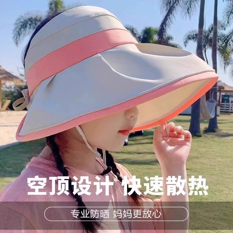 儿童太阳帽女童夏季新款空顶防紫外线大帽檐渔夫帽遮阳帽防晒帽子