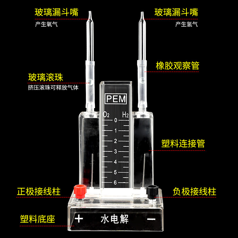 水电解实验器J26001霍夫曼水电解演示器实验室电解水制取氢气氧气装置全套装高中化学教学仪器器材电源电解质