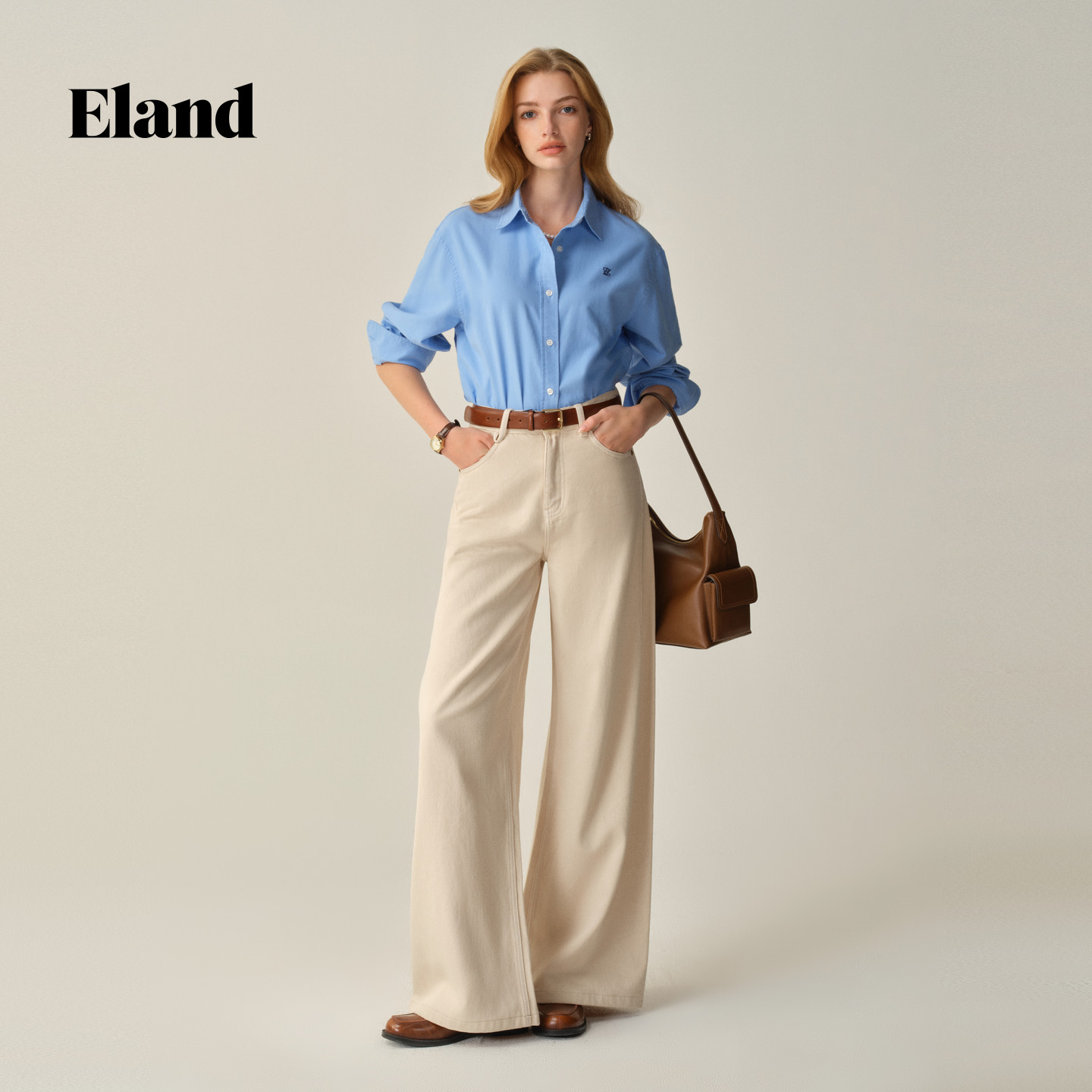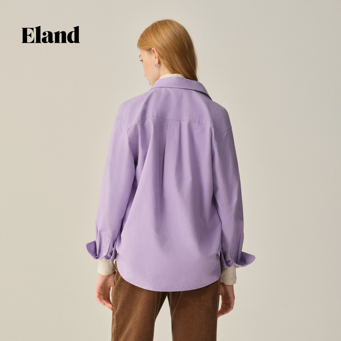 【100%棉】Eland衣恋衬衫女简约休闲宽松翻领上衣2025冬季新款