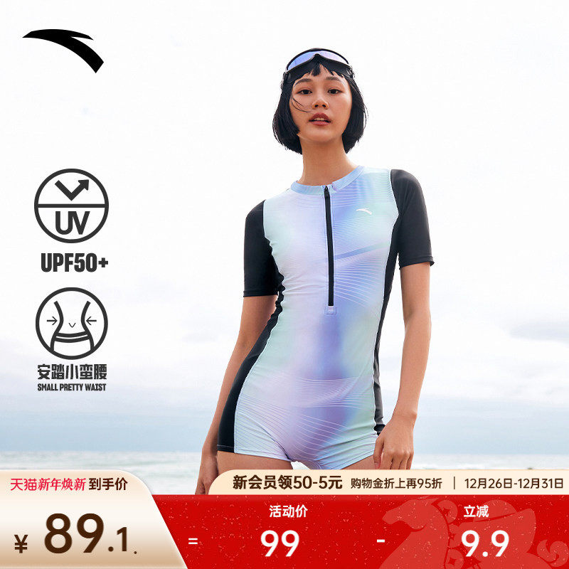 安踏小蛮腰丨女子平角连体泳装修身防晒海边弹力泳衣新款官方正品