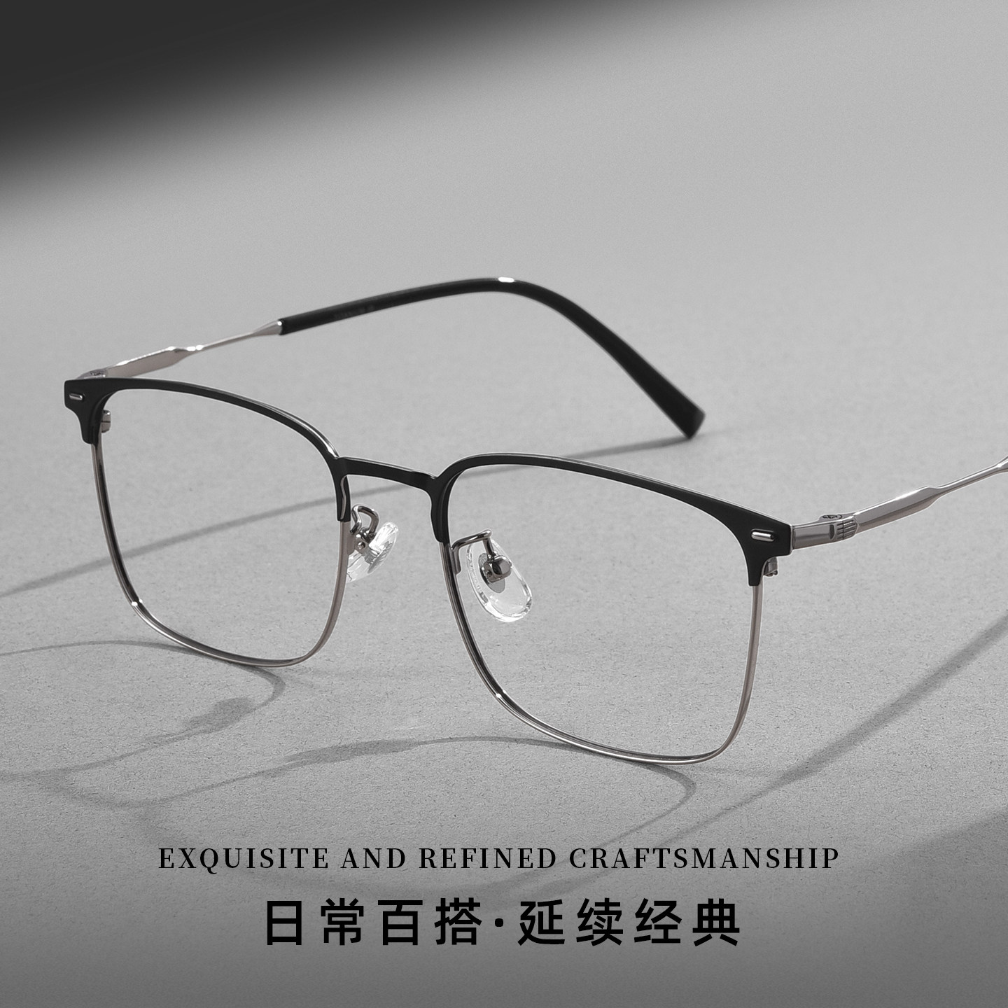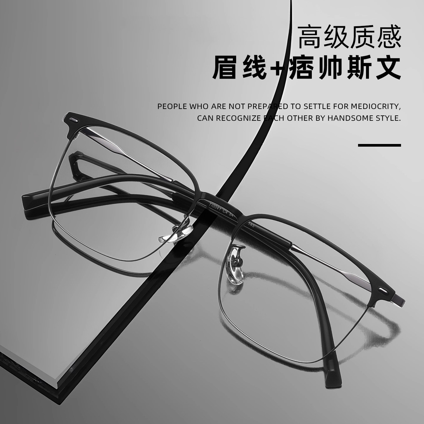 超轻钛合金半框眼镜框男款近视可配度数防蓝光斯文痞帅眼睛架丹阳