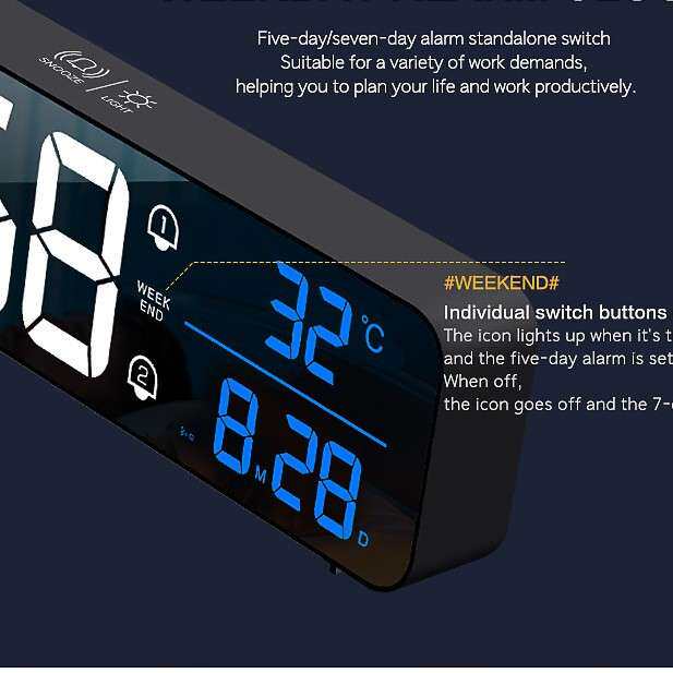 充电版大屏LED数码音乐挂钟工作日贪睡台钟2组闹钟温度声控款