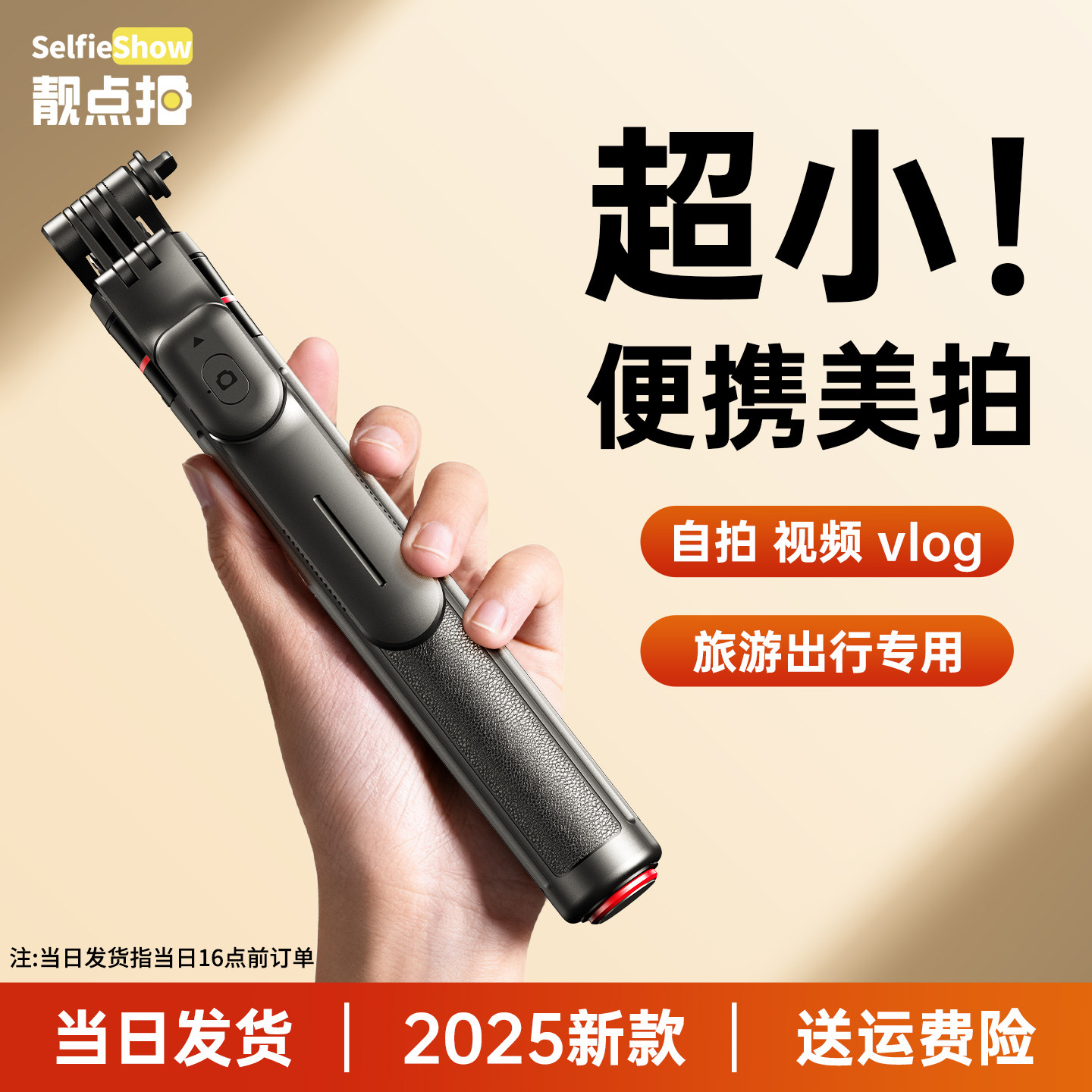 靓点拍迷你自拍杆2026新款旅游便携三脚架拍照神器通用手机360度旋转手持防抖落地稳定拍摄vlog演唱会专用