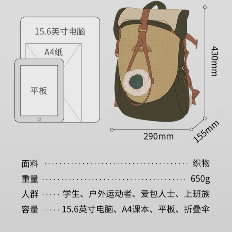 蕉下双肩包书包女户外徒步轻便户外大容量上班防水抽绳通勤背包
