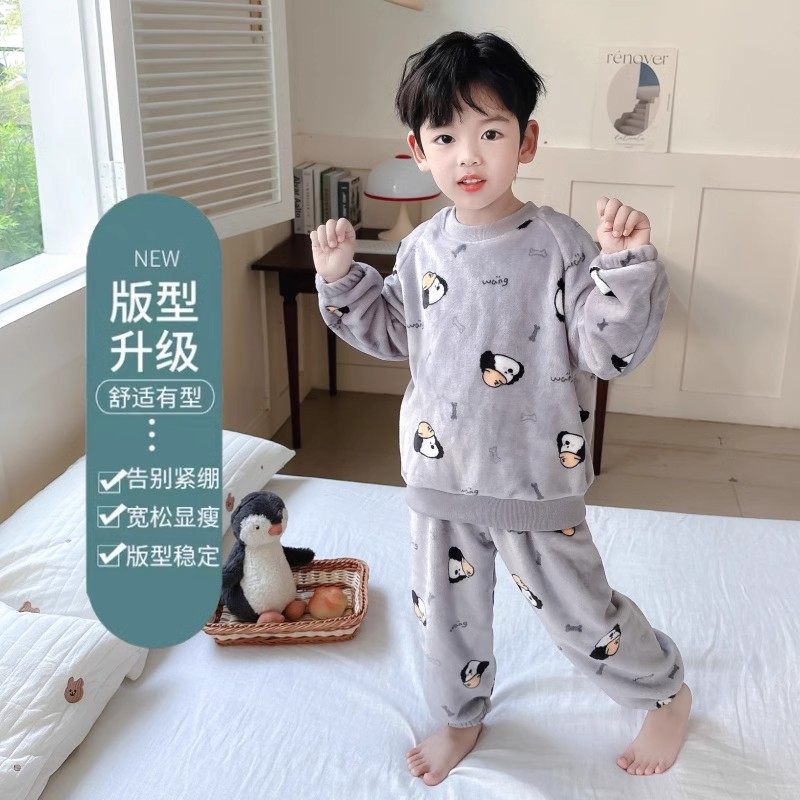 儿童睡衣男童男孩珊瑚绒秋冬款2025新款冬季加厚法兰绒宝宝家居服
