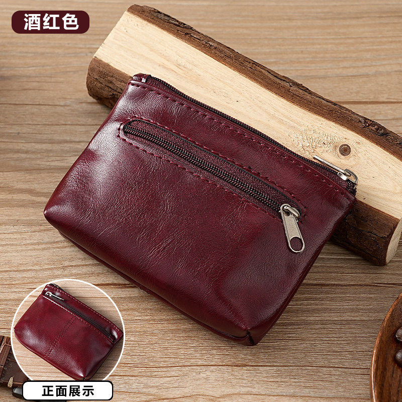 复古油蜡皮短款小钱包女两折叠多功能超薄款拉链卡包零钱夹潮小巧