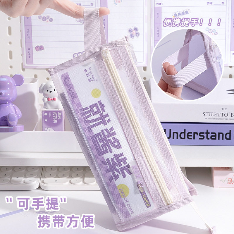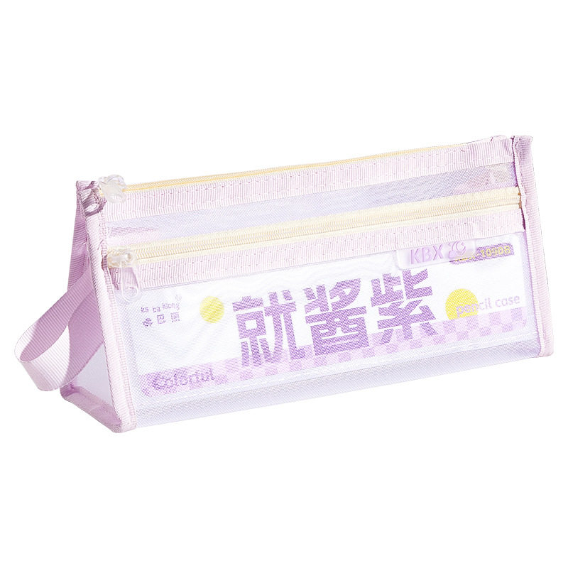 咔巴熊三角网纱笔袋大容量学生文具袋透明高颜值铅笔袋考试专用