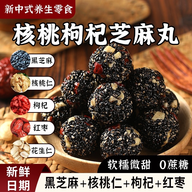 黑芝麻丸无蔗糖核桃仁红枣桑葚早餐零食传统糕点孕妇解馋休闲零食