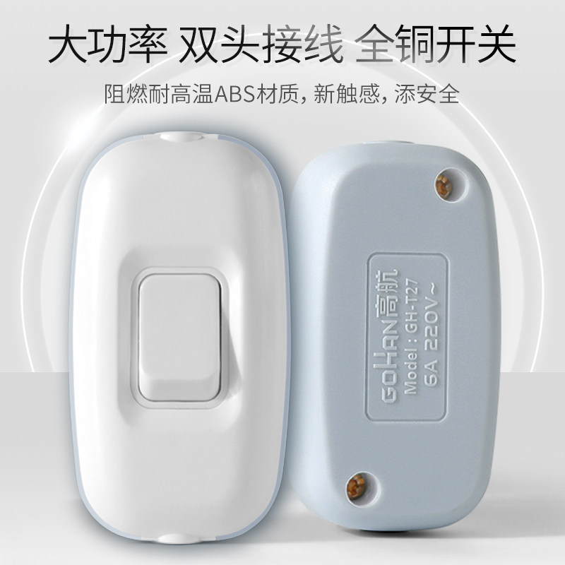高航家用简易6A床头中途按钮单控开关手捏接线台灯电风扇船型开关