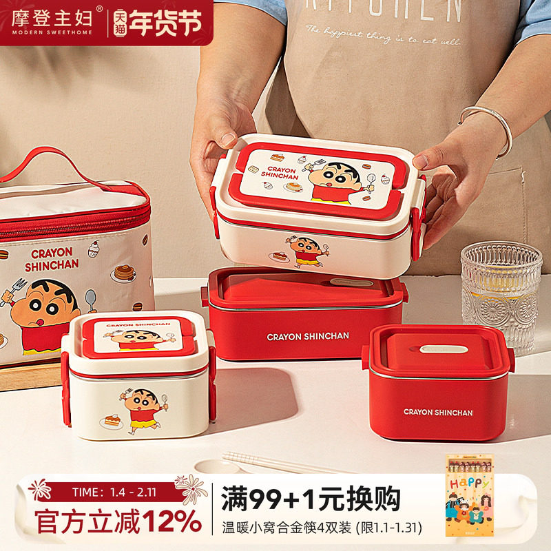 【摩登主妇&蜡笔小新】保温饭盒微波炉加热便当盒不锈钢双层饭盒