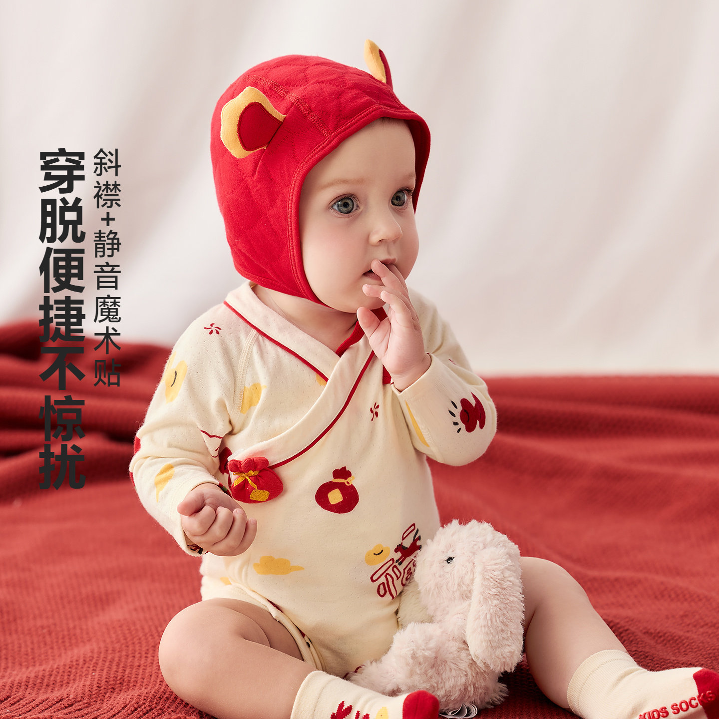 迷你巴拉巴拉婴儿衣服宝宝新生儿连体衣包屁衣纯棉红色满月百天礼