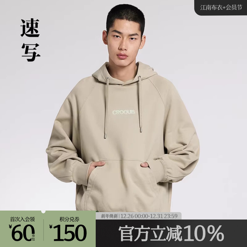 速写outlets奥莱男装春秋折扣新款卫衣棉质宽松连帽刺绣字母长袖