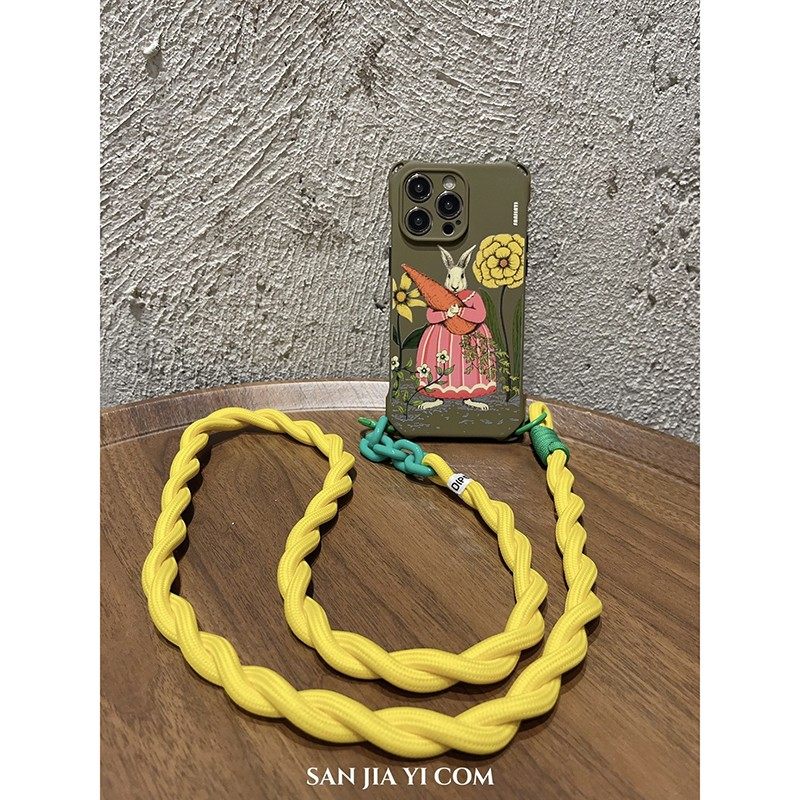 中古风油画萝卜兔斜挎手机壳14Promax手提链条防摔适用苹果iPhone13全包xr侧背12四孔11新款保护套松绿林小众