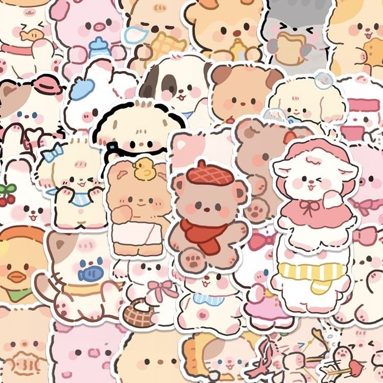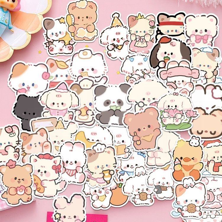 100张可爱小动物贴纸卡通Q版高颜值mini头像手账手机装饰贴画贴贴