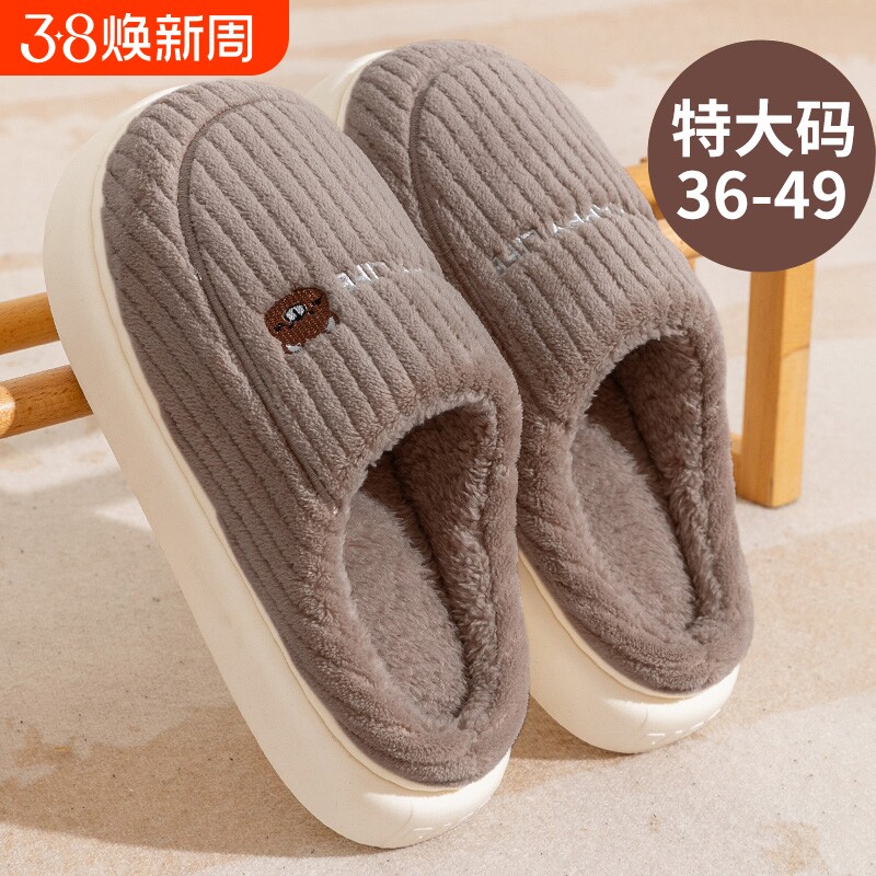 大码棉拖鞋男秋冬季家居家防滑厚底踩屎感毛毛绒保暖室内情侣女士
