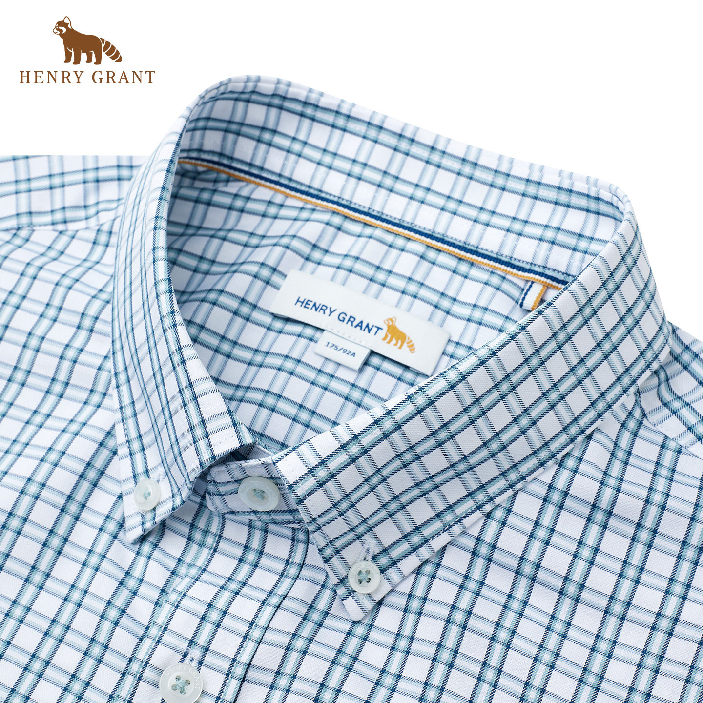 亨利格兰格纹短袖衬衫男士2026夏季新款潮流百搭休闲通勤上班衬衣