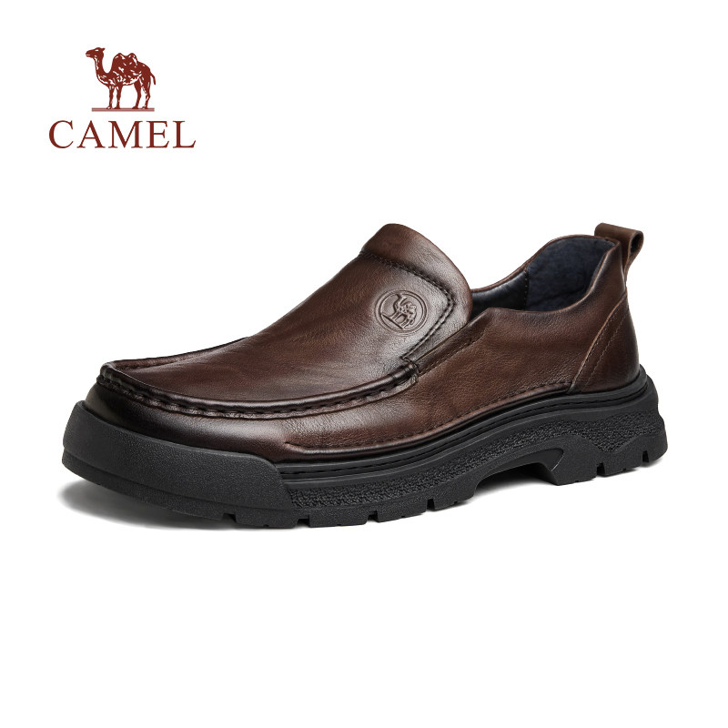 骆驼男鞋2025冬季新款舒软牛皮套脚增高乐福鞋男士经典商务皮鞋