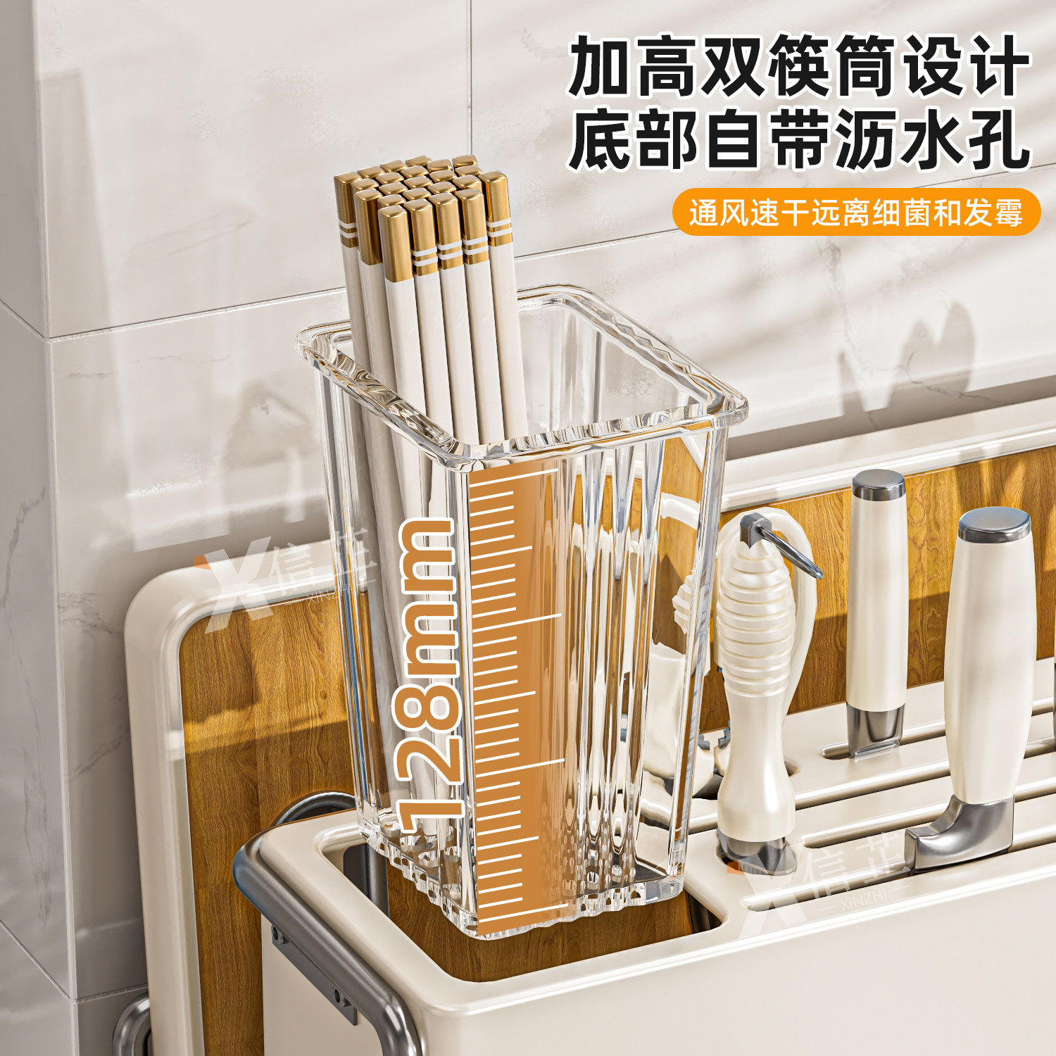 厨房刀架置物架多功能新款台面筷子筒菜板一体壁挂刀具收纳架沥水