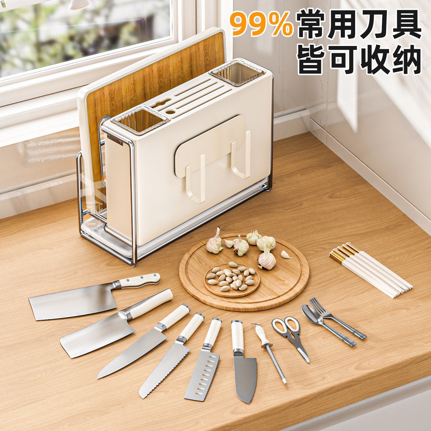 多米新款厨房刀架置物架台面多功能菜刀筷子笼砧板一体刀具收纳架