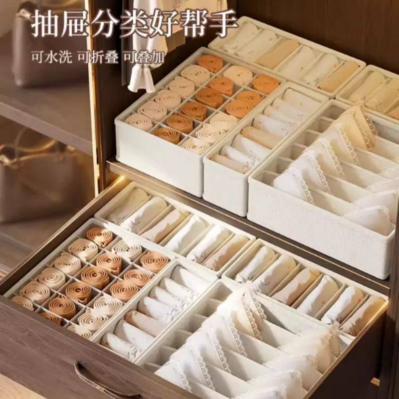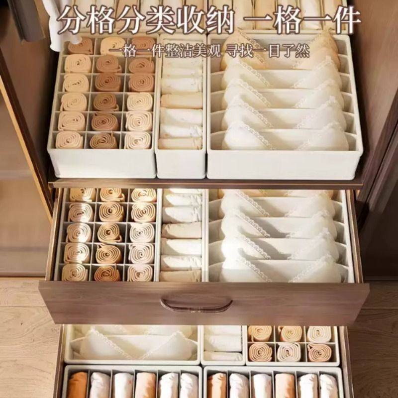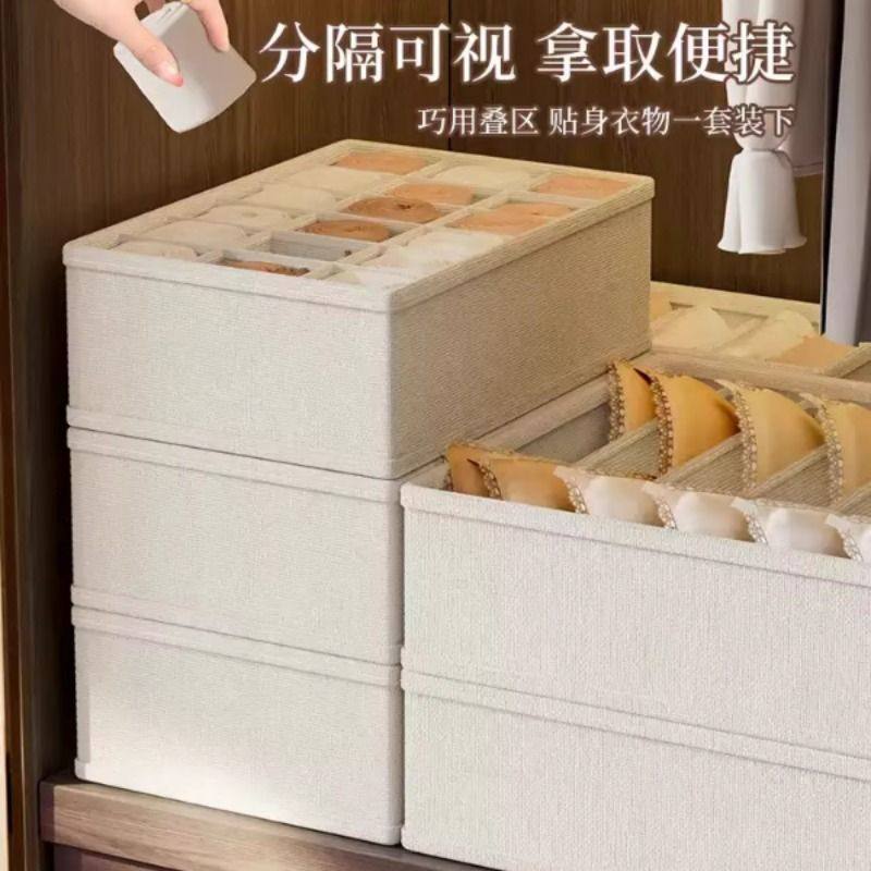 内衣收纳盒内裤袜子布艺衣物三合一整理盒抽屉式收纳神器分隔衣柜