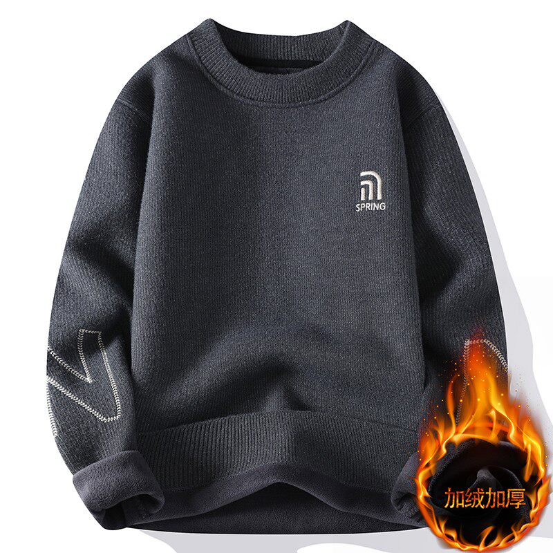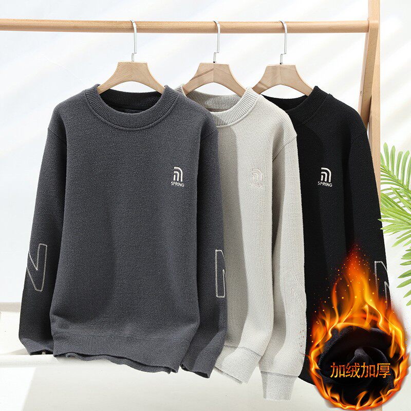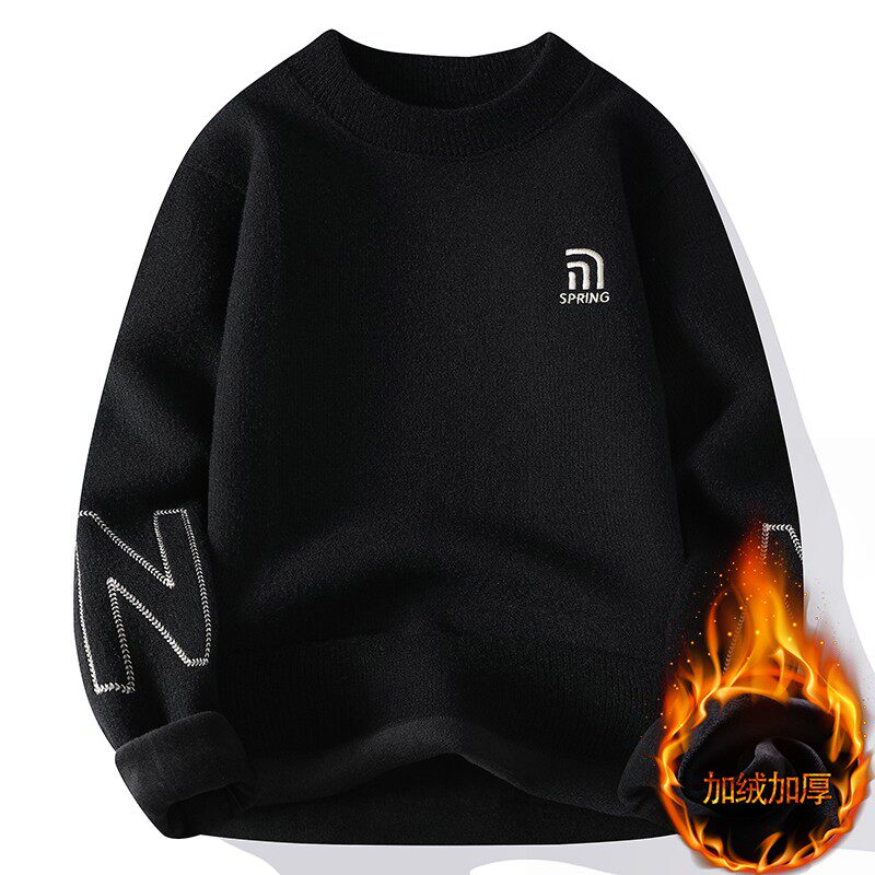 【雪貂绒】毛衣男款冬季加绒加厚刺绣针织衫休闲保暖上衣宽松打底