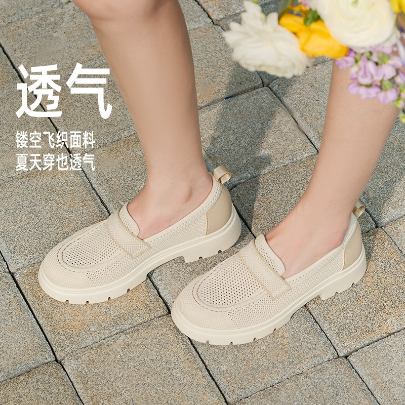 Pansy盼喜26春夏休闲风圆头乐福鞋女一脚蹬厚底舒适百搭豆豆鞋