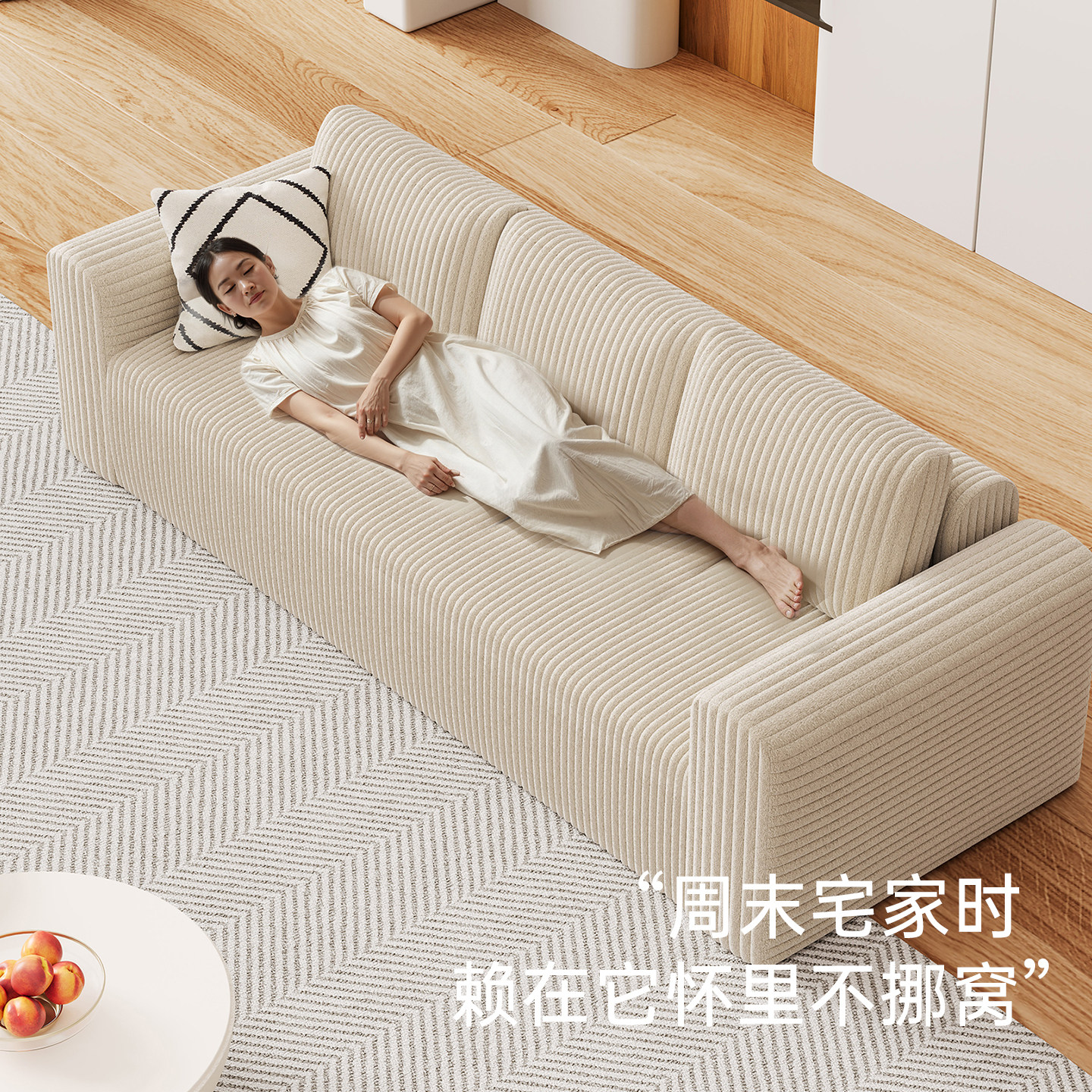 奶油风布艺沙发客厅2025新款小户型家用可拆洗三人位直排云朵沙发