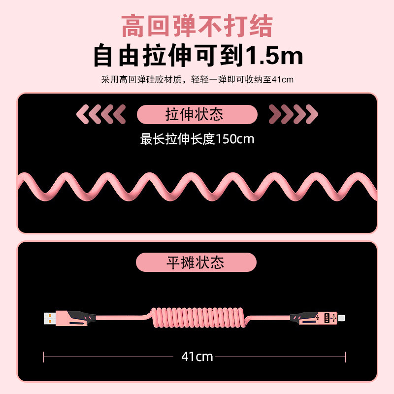 适用于车载carlife导航互联投屏四合一充电线carplay伸缩弹簧功能数据线typec汽车苹果16iPhone小米华为Hicar