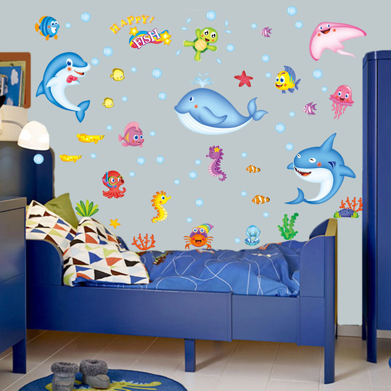 创意3D卡通海底世界卧室客厅幼儿园环境装饰贴可移除墙贴纸XL7159