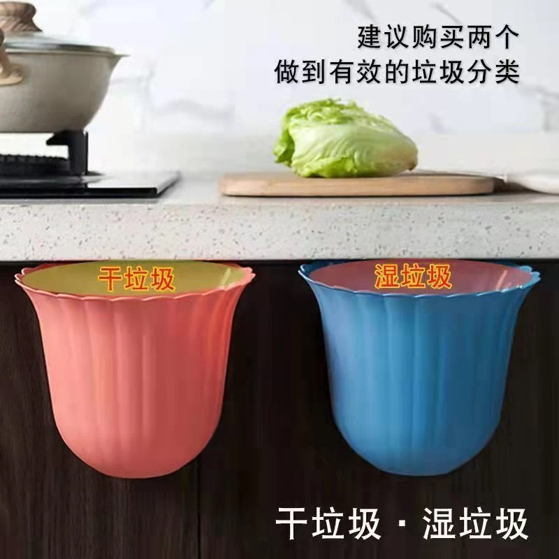 厨房壁挂式垃圾桶卫生间柜门悬挂橱柜门花边纸篓家用高颜值收纳桶