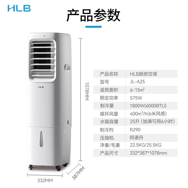 HLB厨房专用空调无排热管移动空调一体机无外机免安装压缩机单冷