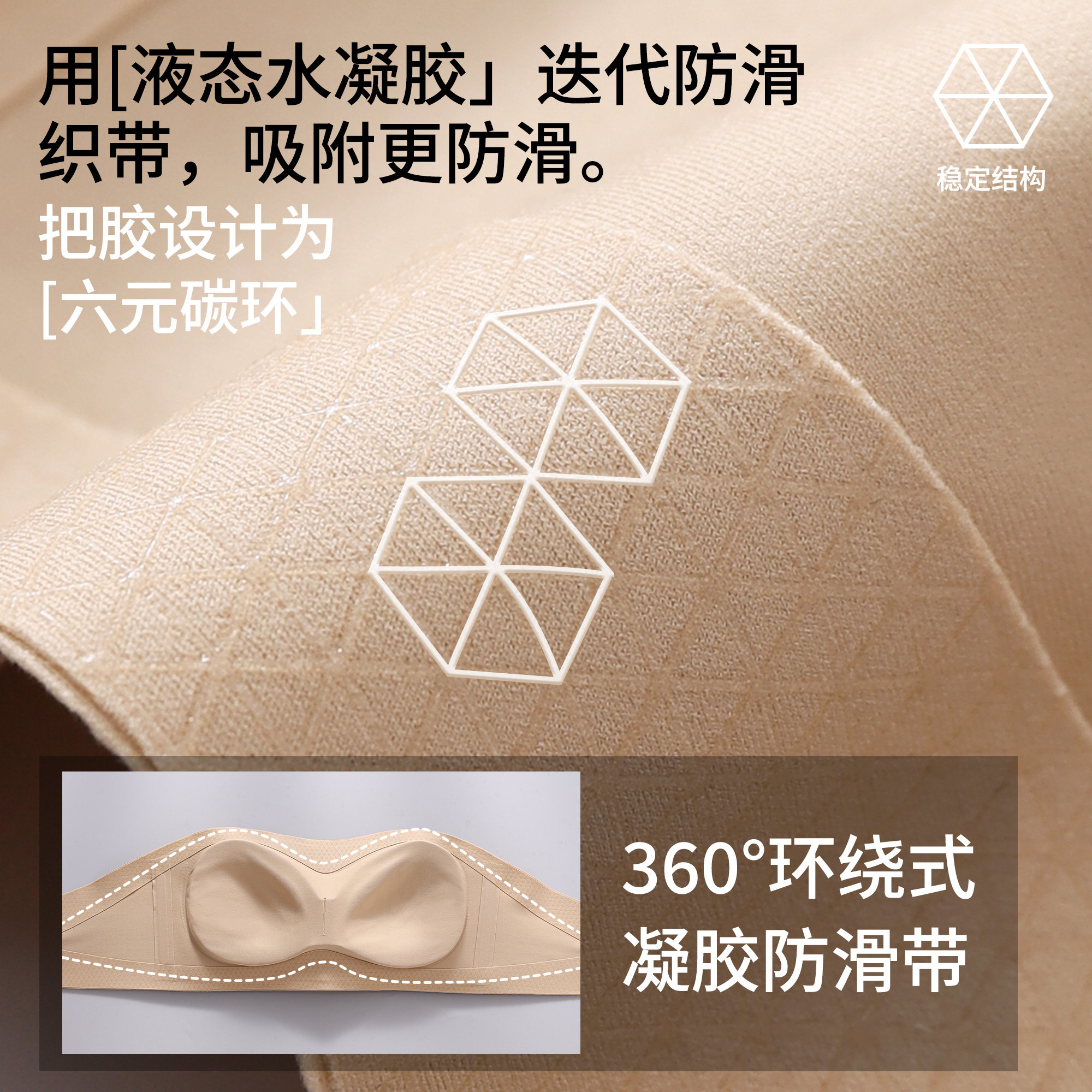 润微防滑无肩带粉底液隐形抹胸防走光无痕美背内衣女小胸聚拢文胸